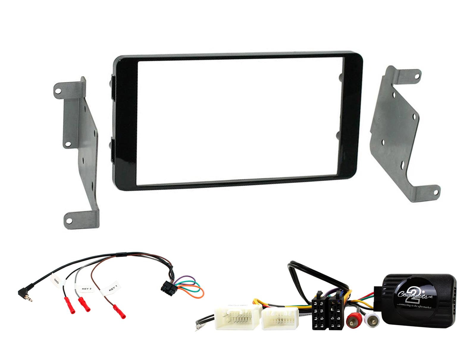 Levereras med svart dubbel DIN-panel, gränssnitt för rattkontroll och universell patchkabel.