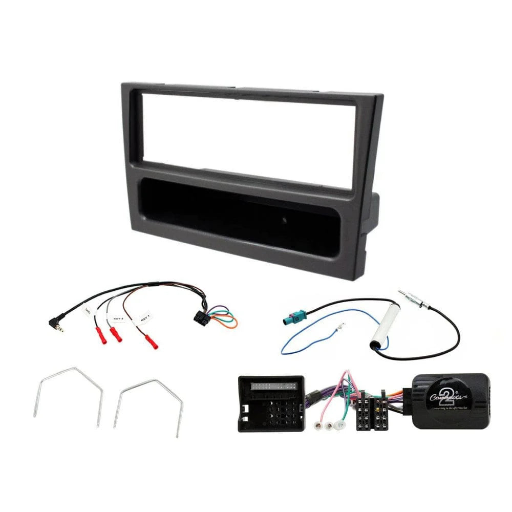 The CTKVX31 is an installation kit for Opel. It includes a single-DIN mounting frame in anthracite metallic, steering wheel control wiring for CAN-Bus, Opel ignition keys and antenna adapters.