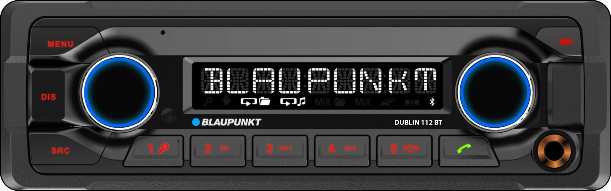Blaupunkt Dublin 112 BT Radio/USB/BT med minnesbackup och fast front. Inbyggd mikrofon för blåtand + extern blåtandsmikrofon (ingår)