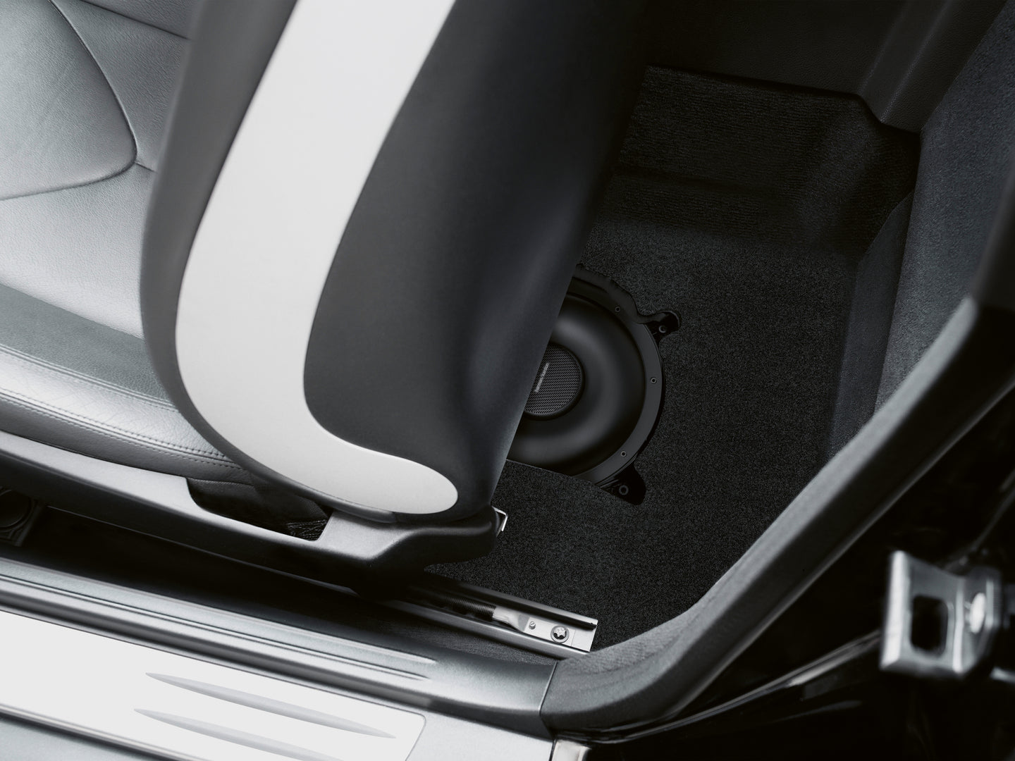 Harman/Kardon Flow 80 subwoofern levererar exakt och kraftfull basprestanda tack vare sin utrymmessparande inverterade akustiska struktur och den kraftfulla neodymiummagneten med en stor 2-tums talspole. Den är designad för att integreras sömlöst och kommer med ett BMW-specifikt monteringschassi och plug-and-play-kontakt för direkt installation i utvalda BMW-modeller under framsätena. Den kan även användas för att förbättra basprestanda i lyxiga Audi- och Porsche-fordon.