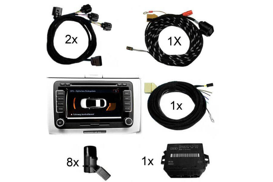 Bundle in order to retrofit an original Park Pilot system on the front and back of the vehicle for VW CCOptical park system OPSMuch better distance control through frequently acoustic sound as well as optical display on the head unit screenSelectable options:until model year 2015from model year 2016Scope of delivery:Wiring harnessControl unitSensors + holderBuzzerNote:After installation you need to code the system. Please contact an VW dealer or workshop with diagnostic software.