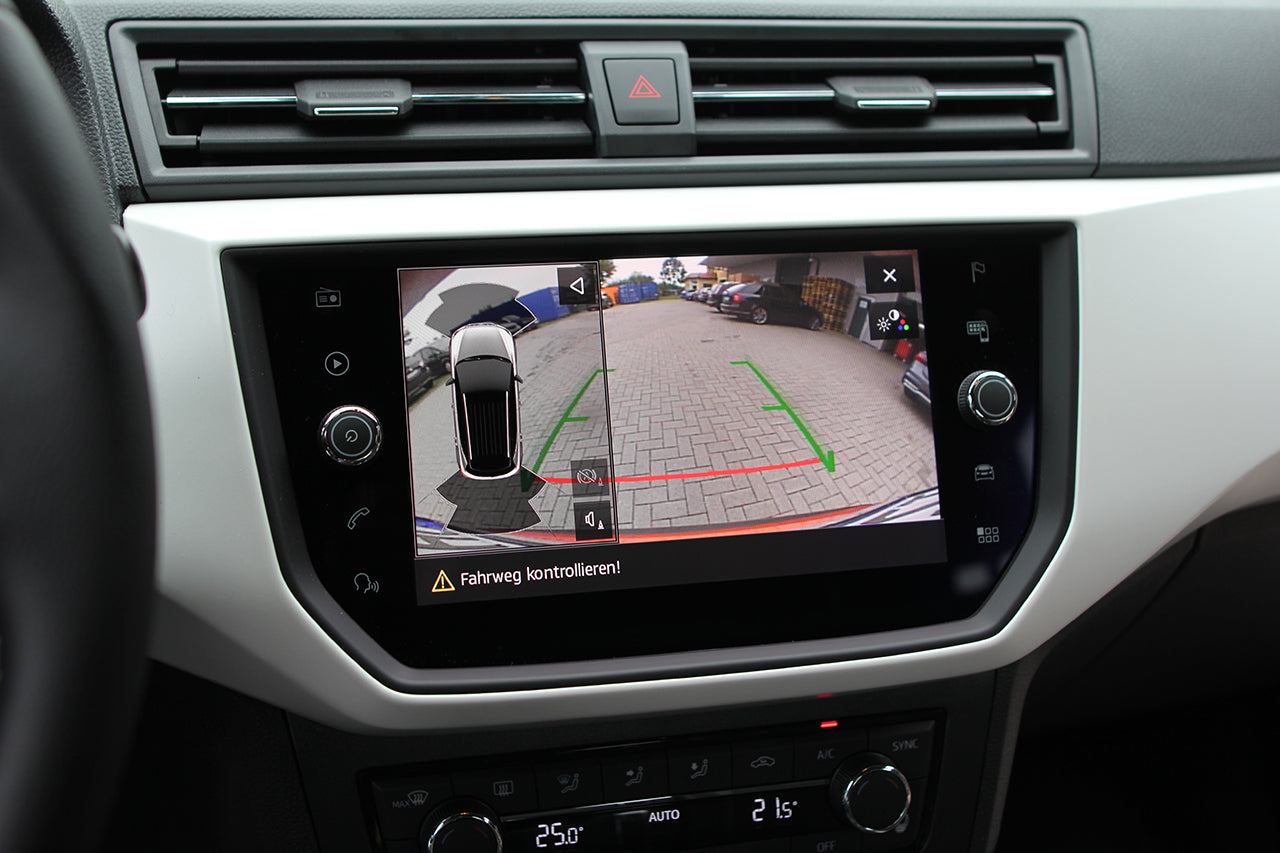 Complete set for the retrofit of a rearview camera for Seat Arona KJ7Wide-angle view of the rear portionNo installation of original control unit or additional monitors!Automatic switching to rear camera in reverse gearExchange of views between PDC and rear camera possibleSuitable radio versions:PR-No.: I8F, I8Q or 8ARScope of delivery:HarnessHandlebar with integrated cameraNote:With static auxiliary-line presentationThe guide lines are shown solid and do not move with steeringOnly suitable for vehicles with front and rear parking assistance (PR-No.: 7X2 or 7X5)