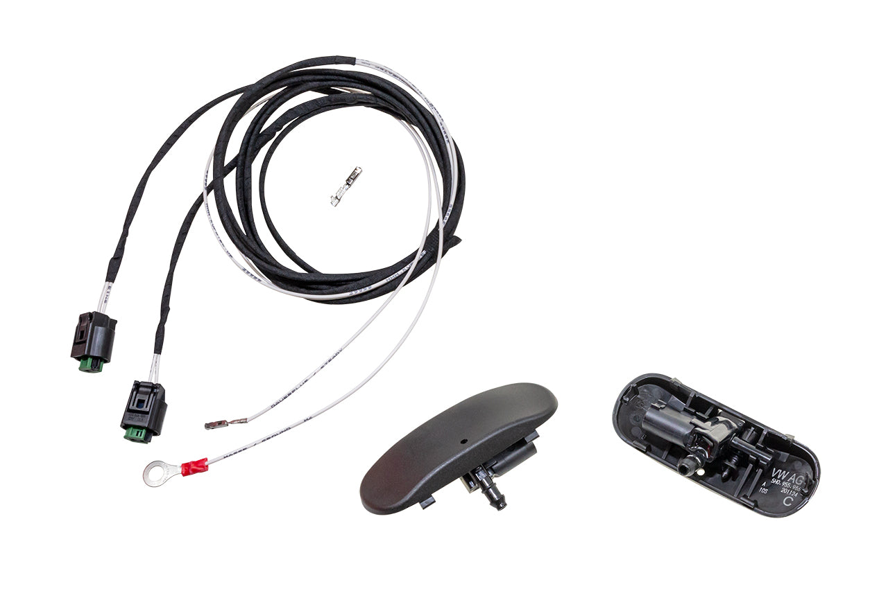 Complete set heated windshield washer nozzles for the following VW vehicles:VW Golf 8 CD, CGVW ID3 E11VW ID4 E21VW ID5 E39VW ID-Buzz EBSeat Formentor KM7Seat Leon KLClear view even in winter due to the heated windshield washer nozzlesScope of delivery:2 x spray nozzlesCable setNote:The 48894 codingdongle is to be used for final coding
