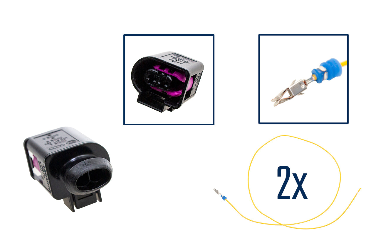 2-pin plug housing for spare parts and repairsConnector OE number: 4D0 971 992There are 3 different options available:Connector / plugOnly the pure connector is supplied hereConnector / plug + contact materialHere we deliver the connector and the required contact materialFor automotive cables FLRY 0.5mm² - 1.0mm² / 1.5mm² - 2.5mm²Fully assembled connector / plugCable length: 600mm0.5mm² / 1.0mm² / 2.5mm² FLRY vehicle cables with reduced wall thickness and high concentricity according to the standards ISO 6722, DIN 72551, LV 112Assembled single cable similar to 000 979 225 E (0.5mm²) 000 979 133 E (1.0mm²) 000 979 225 E (2.5mm²)Produced on fully automatic machines with crimp force monitoring (process monitoring)Approved for the automotive sector (temperature range from -40 ° C to 105 ° C)Cables comply with the EU directive for end-of-life vehicles 2000/53 / EG (EU end-of-life vehicle regulation)Selectable options:Connector only (2-pin socket housing 4D0 971 992)Connector + contact material (2-pin socket housing 4D0 971 992 + 2x contacts + 2x seals and 1x blind seal) 0.5mm² - 1.0mm²Connector + contact material (2-pin socket housing 4D0 971 992 + 2x contacts + 2x seals and 1x blind seal) 1.5mm² - 2.5mm²Assembled repair kit (2-pin socket housing 4D0 971 992 with fully crimped connecting cables) 0.5mm²Assembled repair kit (2-pin socket housing 4D0 971 992 with fully crimped connecting cables) 1.0mm²Assembled repair kit (2-pin socket housing 4D0 971 992 with fully crimped connecting cables) 2.5mm²Note:To ensure proper function and tightness, make sure that the cable diameter and cross-section are correctThe original spare part number / OE number is for comparison purposes only