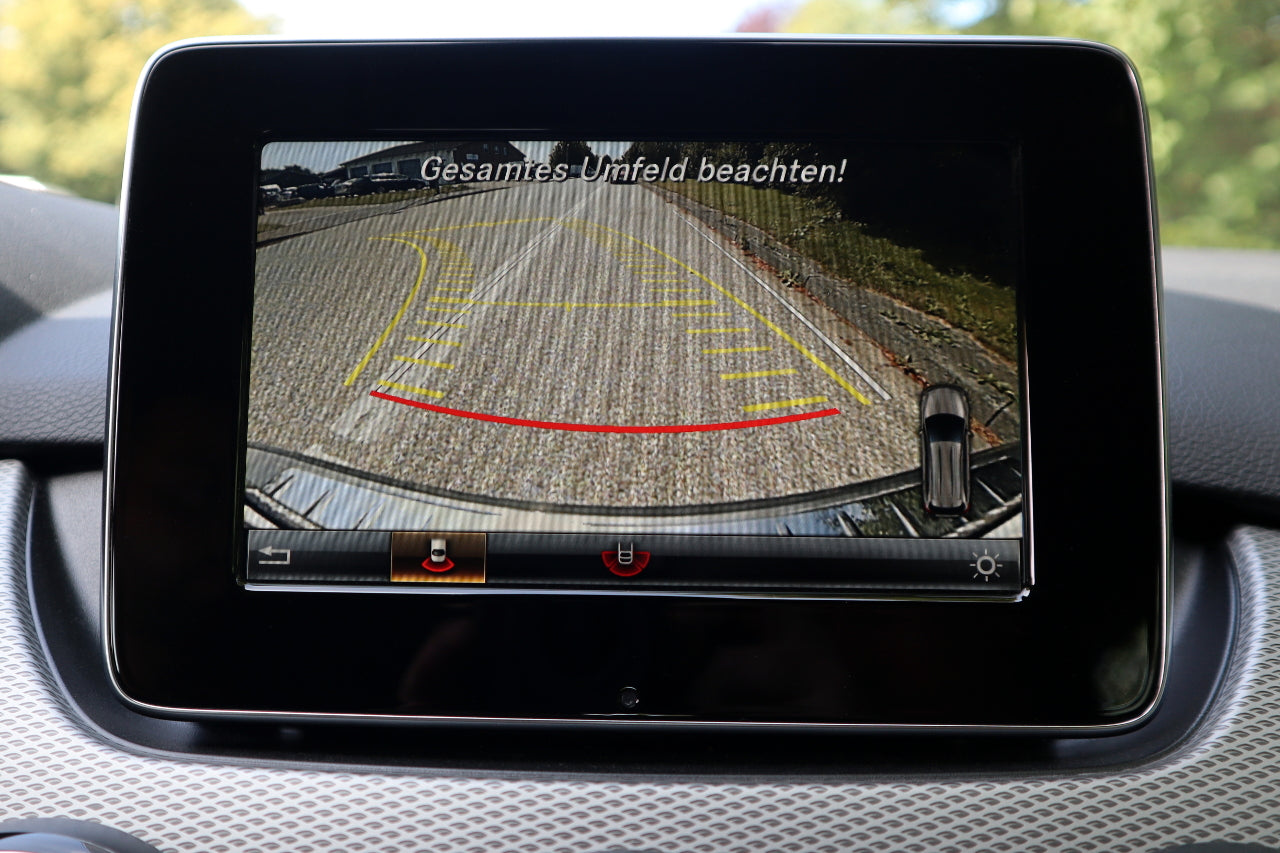 Complete set for retrofitting an original rear view camera for Mercedes Benz B-Class W246Suitable for the following factory infotaiment systems:Audio 20 CD (Code 505/522/523)Audio 20 CD with 6 x CD Changer (Code 510)Comand APS NTG5 Star1 Code 531 (on request)Comand NTG 4.5 Code 512 (on request)Integrated camera in the tailgateWide angle display on the navigation screenStatic and dynamic guide lines show the driver steering angle and distanceA visit to the workshop at Mercedes is not required, both the coding and the calibration are carried out completely by the KUFATEC coding dongleScope of delivery:Rear view cameraControl unitHolderHandle barCable setCodingdongleNote:The EZS must be replaced on vehicles that do not have one of the following equipmentCode 234 (Blindspot-Assistant)Code 459 (AMG RIDE CONTROL Suspension)Code 476 (Lane-Assistant)Code 513 (Traffic sign - Assistant)Code 608 (Adaptive Highbeam - Assistant)Code 615 (BI-XENON with cornering light function right hand traffic)Code 631 (LED Headlights static left hand traffic)Code 632 (LED HIGH PERFORMANCE-Headlights)Vehicles before facelift with Audio 20 head unit (Code 505/522/523) and (Code 510) do not have a reversing camera input and must be replaced before retrofitting