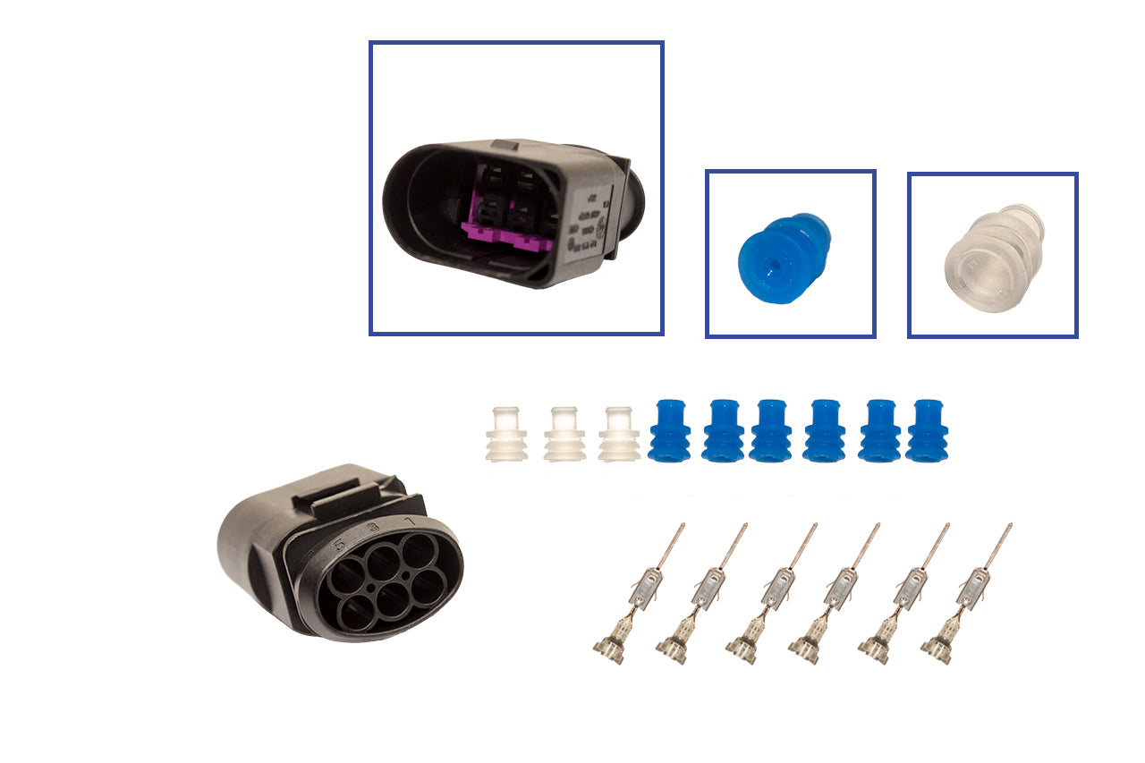 6-flatpin housing for spare parts and repairsConnector OE number: 1J0 973 833There are 3 different options available:Connector / plugOnly the pure connector is supplied hereConnector / plug + contact materialHere we deliver the connector and the required contact materialFor automotive cables FLRY 0.5mm² - 1.0mm² / 1.5mm² - 2.5mm²Fully assembled connector / plugCable length: 600mm0.5mm² / 1.0mm² / 2.5mm² FLRY vehicle cables with reduced wall thickness and high concentricity according to the standards ISO 6722, DIN 72551, LV 112Assembled single cable similar to 000 979 022 E (0.5mm²) 000 979 134 E (1.0mm²) 000 979 226 E (2.5mm²)Produced on fully automatic machines with crimp force monitoring (process monitoring)Approved for the automotive sector (temperature range from -40 ° C to 105 ° C)Cables comply with the EU directive for end-of-life vehicles 2000/53 / EG (EU end-of-life vehicle regulation)Selectable options:Connector only (6-flatpin housing 1J0 973 833)Connector + contact material (6-flatpin housing 1J0 973 833 + 6x contacts + 6x seal and 3x blind seal) 0.5mm² - 1.0mm²Connector + contact material (6-flatpin housing 1J0 973 833 + 6x contacts + 6x seal and 3x blind seal) 1.5mm² - 2.5mm²Assembled repair kit (6-flatpin housing 1J0 973 833 with fully crimped connecting cables) 0.5mm²Assembled repair kit (6-flatpin housing 1J0 973 833 with fully crimped connecting cables) 1.0mm²Assembled repair kit (6-flatpin housing 1J0 973 833 with fully crimped connecting cables) 2.5mm²Note:To ensure proper function and tightness, make sure that the cable diameter and cross-section are correctThe original spare part number / OE number is for comparison purposes only