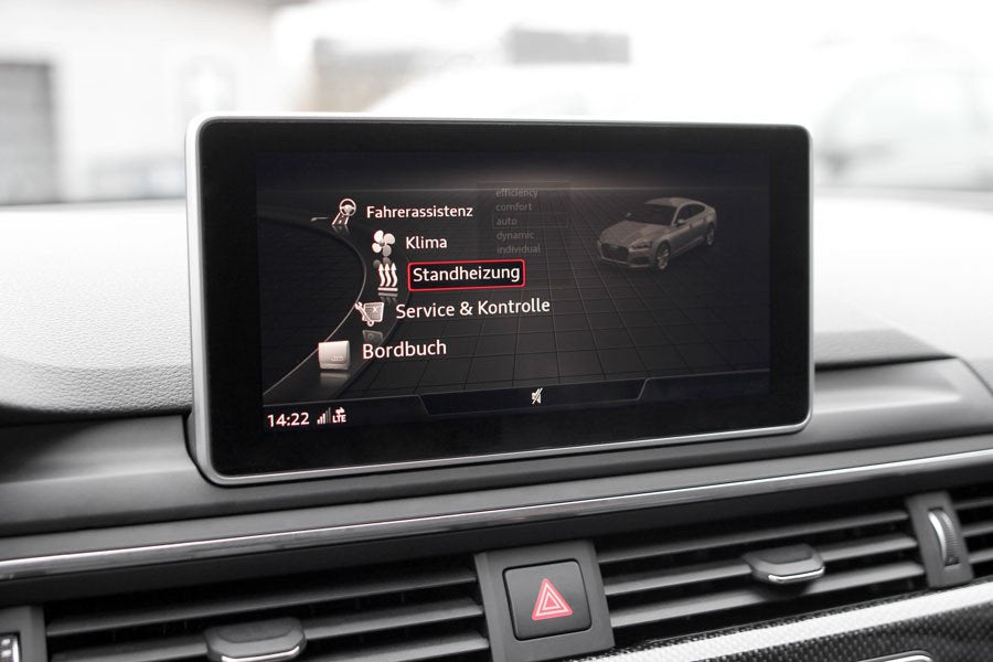 Original auxiliary heating as a retrofit kit for the Audi A5 F5, the heater warms up the interior of ice and frees the disks without starting the engine