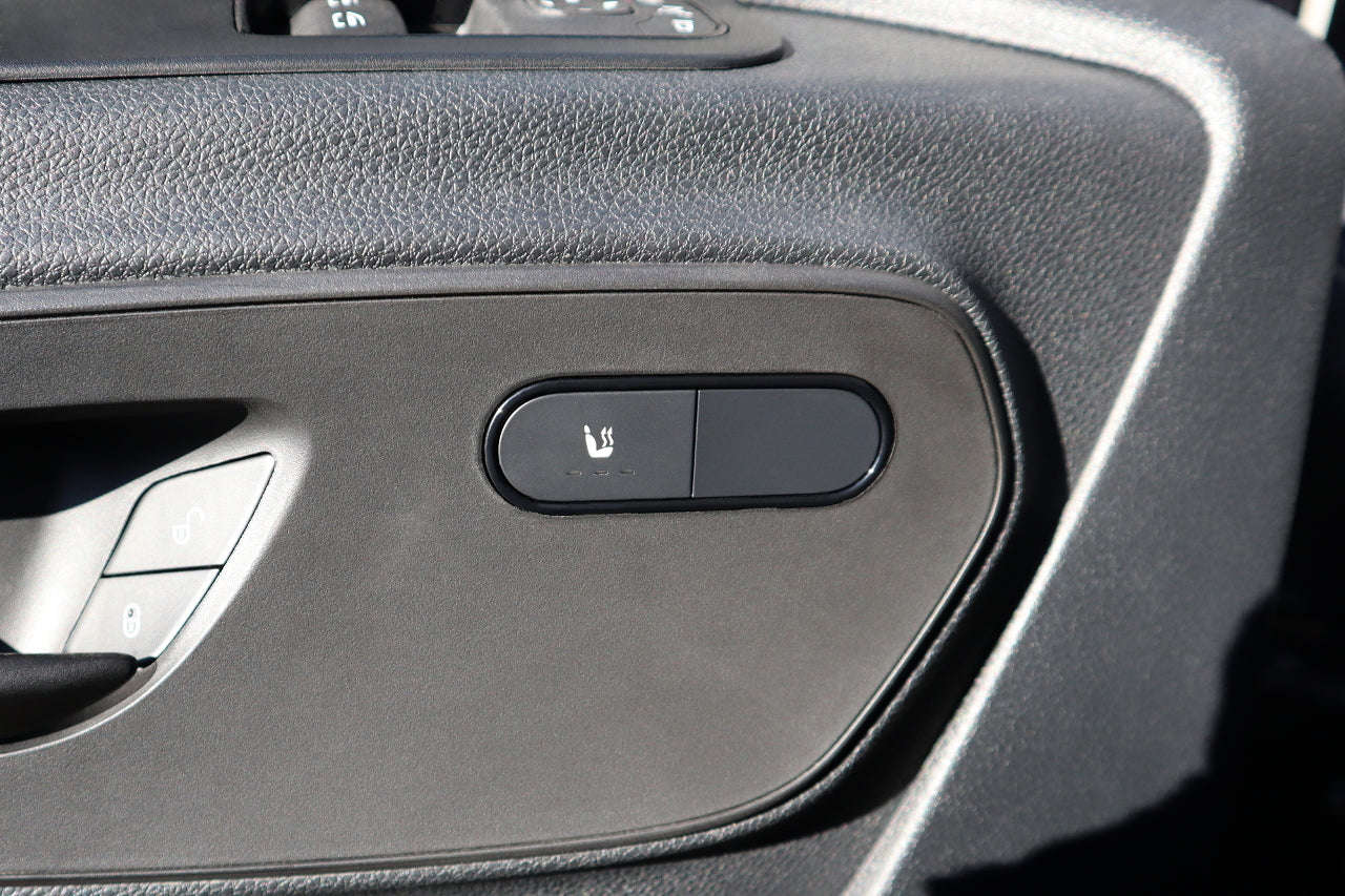 Complete set for retrofitting the original seat heating for Mercedes Benz Sprinter 907/910The seat heating levels can be conveniently selected via the button on the door panelVisual display of the heating levels through LEDs in the buttonSelectable Option:PR number desired side: Driver's seat and passenger seat (Code H15/H16)Driver's seat (Code H16)Equipment available:Driver's seat electrically adjustable (Code SF1)Driver's seat not electrically adjustableVersion 1 of one of these codes available:Comfort driver's seat (Code SB1)Driver's suspension seat (Code SB3)Driver electrically adjustable (Code SF1)Driver's swivel seat (Code SR8)Version 2Driver's seat plus (Code SB9)Version 3Driver's seat (Code S02)Scope of delivery:Seat heating matsControl unitSwitchTrimCable harnessCoding dongleNote:The seat heating mats must be installed in the seat by an upholsterer.Vehicles with code S23 two-seater passenger seat heating on request. The driver's seat heating can still be used according to the equipment.Not suitable for fully integrated motorhomes