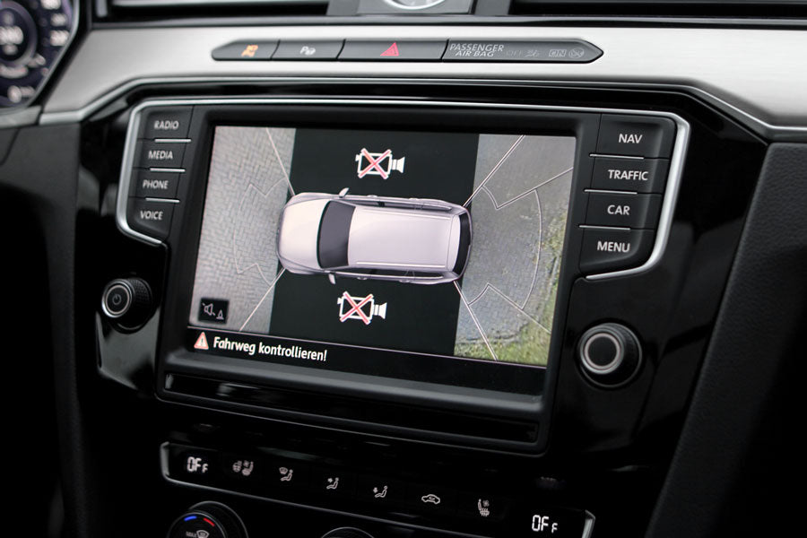 Complete set for retrofitting the original front and rear view camera for VW Passat B82 cameras - rear view camera in the VW emblem and front camera in the radiator grilleCamera views (front, rear) via display as full or split screenbetter obstacle detection"Trailer" function of the reversing camera (graphical representation of the ball head)"Offroad" function of the front camera (stones, stumps, potholes - clearly visible in the track)Dynamic auxiliary lines and fields, which change according to the steering angleThis article is also suitable for retrofitting trailer assistSelectable options:VW Passat B8 - Sedan, FM0, up to model year 2019VW Passat B8 - Variant, FM0, up to model year 2019VW Passat B8 - Sedan, FM1, up to model year 2019VW Passat B8 - Variant, FM1, up to model year 2019VW Passat B8 - Sedan, FM5, up to model year 2019VW Passat B8 - Variant, FM5, up to model year 2019VW Passat B8 - Sedan, FN6, up to model year 2019VW Passat B8 - Variant, FN6, up to model year 2019VW Passat B8 - Sedan, FN7, up to model year 2019VW Passat B8 - Variant, FN7, up to model year 2019VW Passat B8 - Variant, all PR Numbers, from model year 2020VW Passat B8 - Sedan, all PR Numbers, from model year 2020Scope of Delivery:cabel setcamerassmall partscontrol unitcodierdongleSuitable for radio / navigation:Navigation device high (PR-No.: 7UG)Navigation device standard (PR-No.: 7UF)Optionsinfotainment (MIB3) (PR-No.: 8AR)Note:3D Birdview only available together with Discover ProNo installation of additional monitors are requiredIf the vehicle already has a rear view camera ex factory, this must be exchanged for the rear view camera included in the scope of delivery.