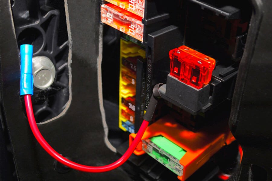 With this practical fuse tap you can directly fuse a signal separately from the fuse box. Simply remove the original fuse and insert the appropriate (XSA100, XSA200, XSA300 or XSA400) instead. Reinsert the original fuse in the XSA and the desired tap is protected by a supplied 10 A fuse on a 4 mm round plug. Technical specifications:DIN/ISO: 72581/3CUp to voltage: 32 VUp to current: 10 AMaterial: Polyamide 6.6Cross-section: 1.3 mm²Cable length: 120 mmFinish: tin platedSVHC: No SVHC substances present!Selectable options (fuse version):Standard flat-plate fuse for ATO fuses (ACU)Mini-blade safety device (ACS)Low Profile Mini Fuse (ACN)MICRO2 fuse (ACZ)Note:Please ensure that the fuse holder is inserted in the correct direction. The fuse holder has an input and two outputs.