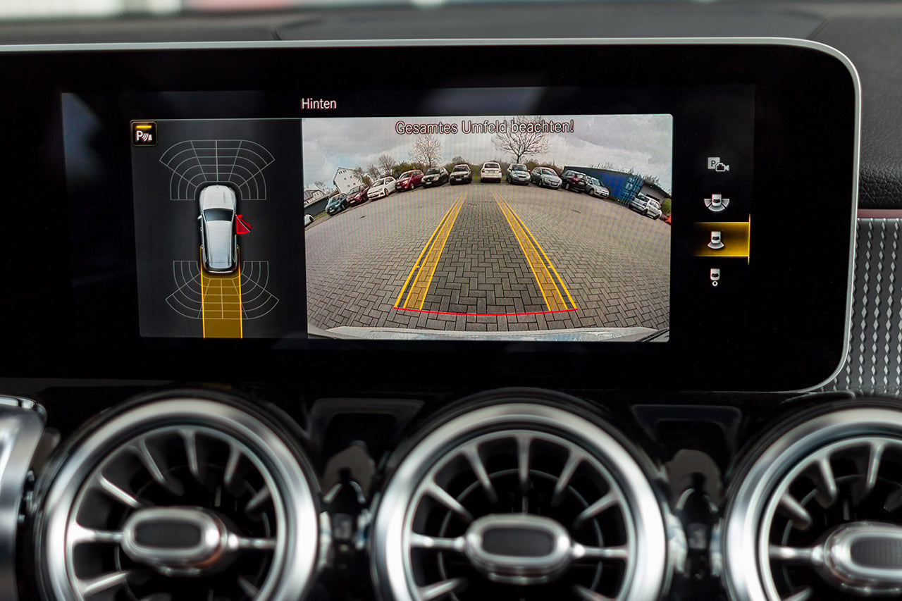 Complete set for retrofitting an original rear view camera for Mercedes Benz GLB-Class X247Suitable for the following factory infotaiment systems:NTG 6 (MBUX)Integrated camera in the tailgateWide angle display on the navigation screenStatic and dynamic guide lines show the driver steering angle and distanceSelectable option:Active Park Assist Code 235 availableActive Park Assist Code 235 not availableScope of delivery:Rear view cameraHandle barCable setCodingdongle