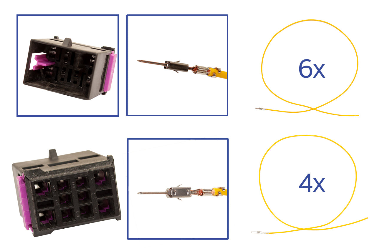 10-pin socket housing for spare parts and repairsConnector OE number: 1J0 937 743There are 3 different options available:Connector / plugOnly the pure connector is supplied hereConnector / plug + contact materialHere we deliver the connector and the required contact materialFor automotive cables FLRY 0.5mm² - 1.0mm² / 1.0mm² - 2.5mm²Fully assembled connector / plugCable length: 600mm0.5mm² / 1.0mm² / 2.5mm² FLRY vehicle cables with reduced wall thickness and high concentricity according to the standards ISO 6722, DIN 72551, LV 112Assembled single cable similar to 000 979 020 E (0.5mm²) 000 979 132 E (1.0mm²) 000 979 134 E (1.0mm²) 000 979 226 E (2.5mm²)Produced on fully automatic machines with crimp force monitoring (process monitoring)Approved for the automotive sector (temperature range from -40 ° C to 105 ° C)Cables comply with the EU directive for end-of-life vehicles 2000/53 / EG (EU end-of-life vehicle regulation)Selectable options:Connector only (10-pin socket housing 1J0 937 743)Connector + contact material (10-pin socket housing 1J0 937 743 + 10x contacts) 0.5mm² - 1.0mm²Connector + contact material (10-pin socket housing 1J0 937 743 + 10x contacts) 1.0mm² - 2.5mm²Assembled repair kit (10-pin socket housing 1J0 937 743 with fully crimped connecting cables) 6x 0.5mm² + 4 x 0.5mm²Assembled repair kit (10-pin socket housing 1J0 937 743 with fully crimped connecting cables) 6x 1.0mm² + 4 x 1.0mm²Assembled repair kit (10-pin socket housing 1J0 937 743 with fully crimped connecting cables) 6x 1.0mm² + 4x 2.5mm²Note:To ensure proper function and tightness, make sure that the cable diameter and cross-section are correctThe original spare part number / OE number is for comparison purposes only