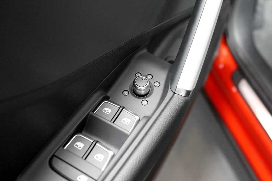Complete set for retrofitting folding exterior mirrors in Audi Q2 GA, using the adjustment button at the drivers door